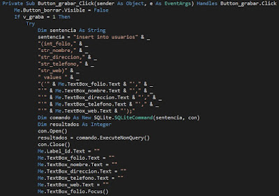 Dentro de botón Button_grabar almacenaremos el código que guarda los registros en la tabla, el procedimiento guardara tanto los registros nuevos como los cambios:
